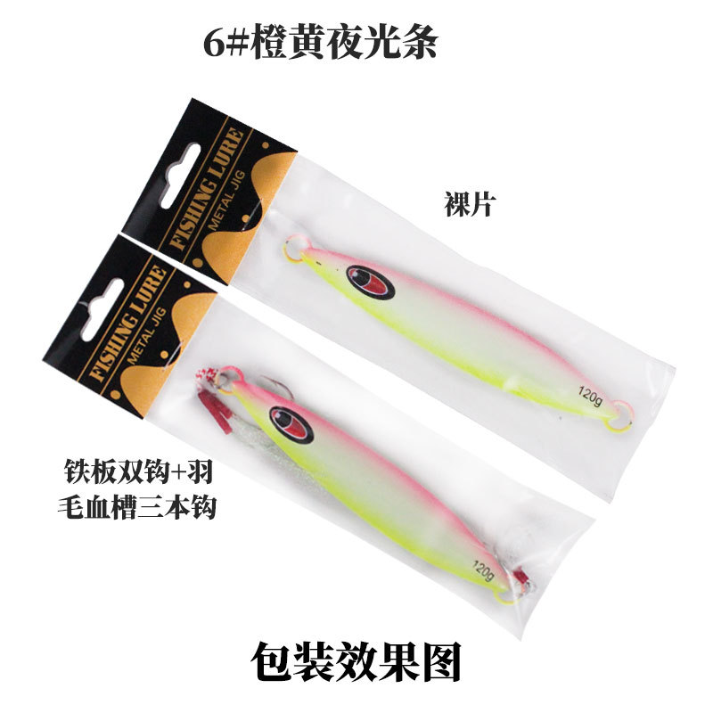 - Specifications: 120g (with chuck) with iron plate double hook + feather blood groove three hook