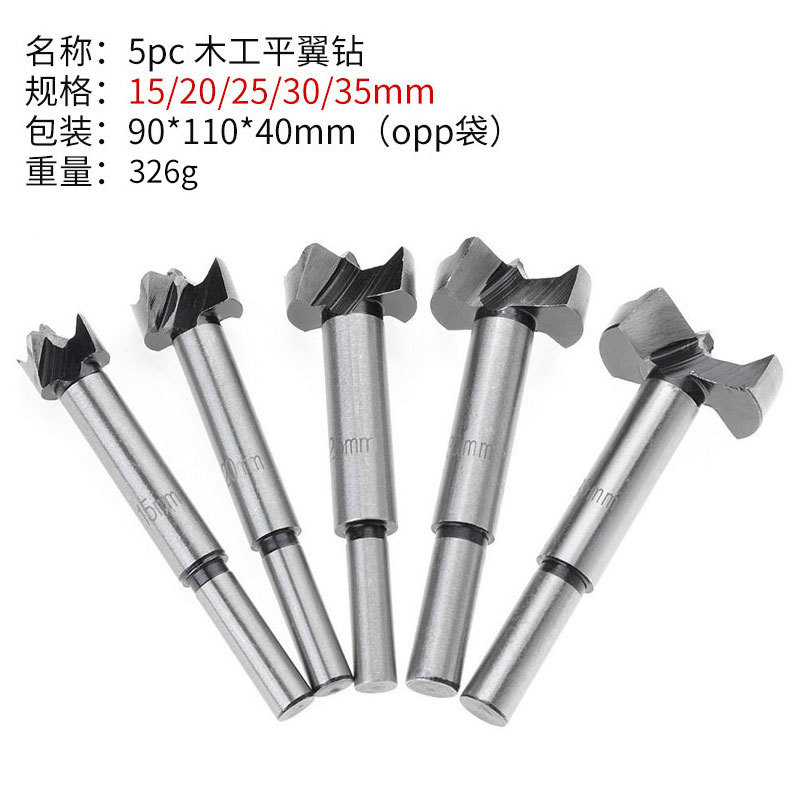 - Model: 5-piece woodworking flat-wing drill set