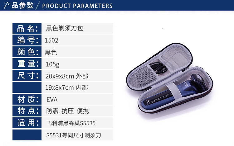 - Specifications: 1502 black single razor storage bag