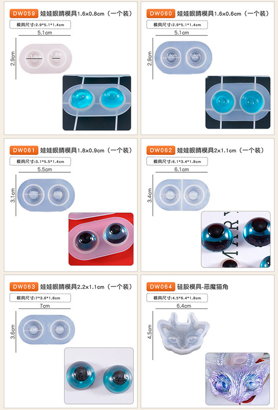 - Specification: DW060 Doll Eye Mold 1.6x0.6cm (One Pack)
