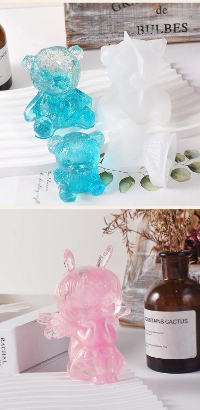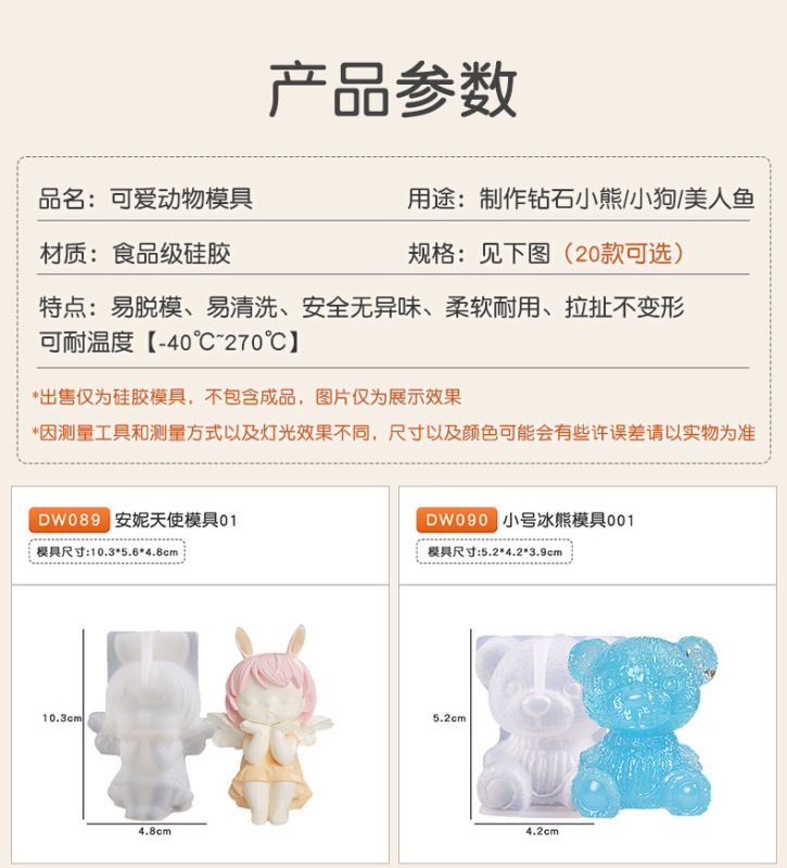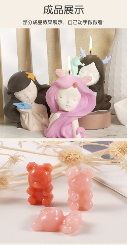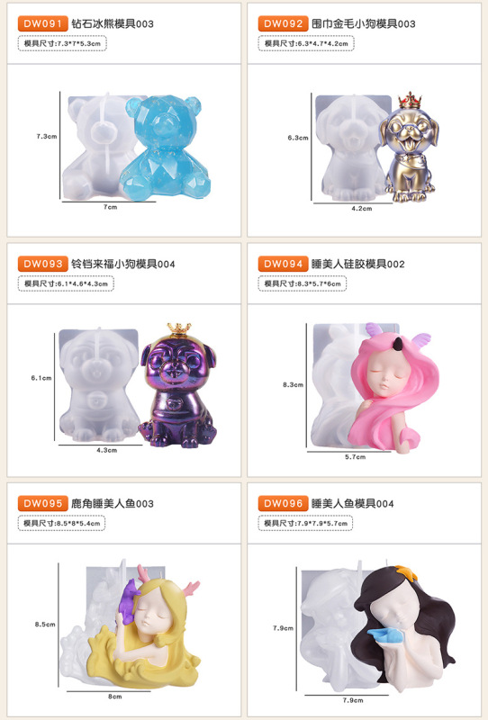 - Product Specification: 3D Animal Angel Diamond Bear Dog Mermaid Scented Candle Silicone Mold