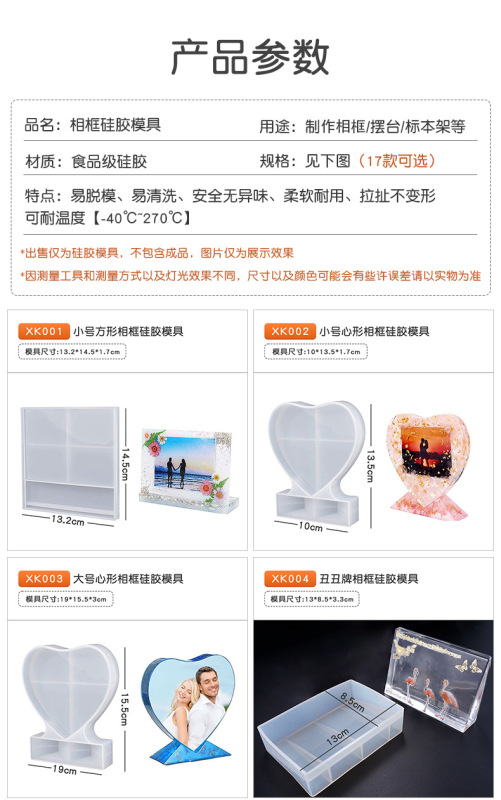 - Specifications: XK002 heart-shaped photo frame silicone mold (one pack)