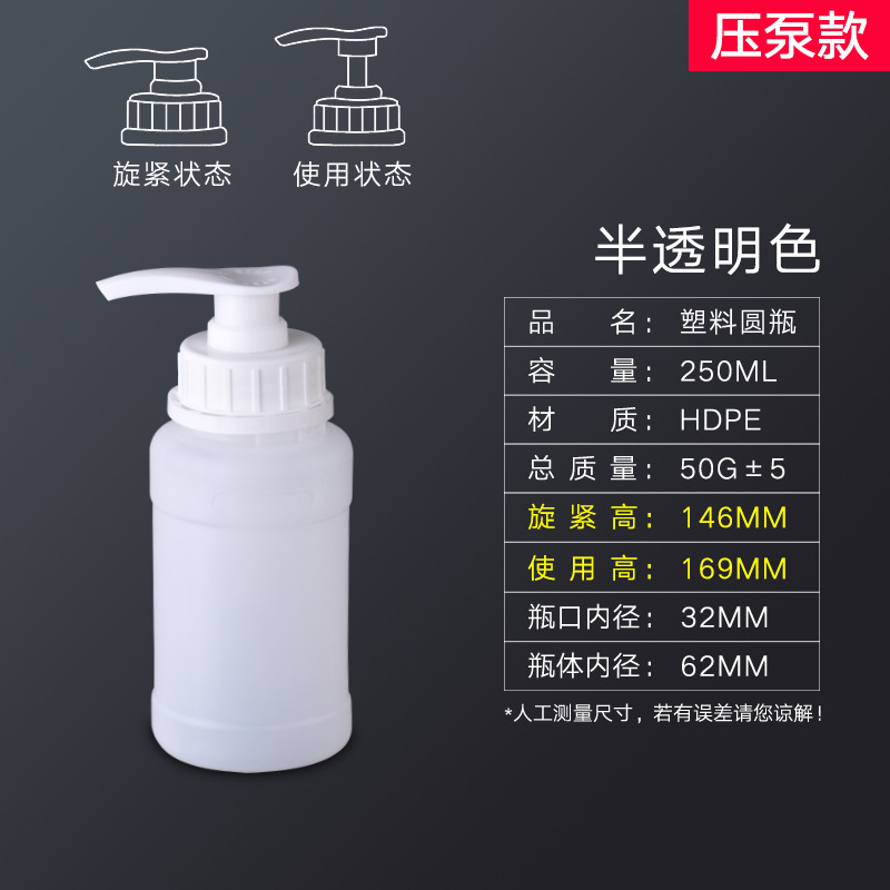 - Specification: 250ml Pump Round Bottle - Semi-Transparent