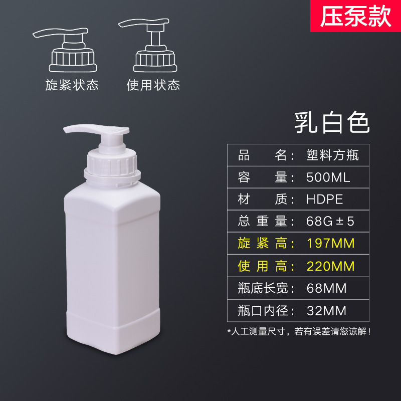 - Specification: 500ml Square Bottle - Milky White