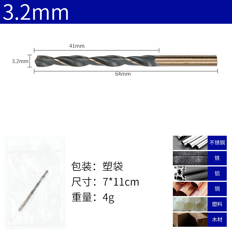 - 規格型號:3.2MM*10-120*高速鋼*直柄麻花鑽