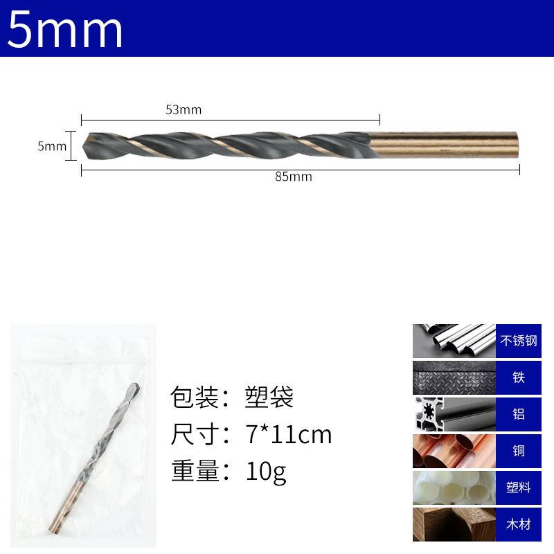 - 規格型號:5MM*10-120*高速鋼*直柄麻花鑽