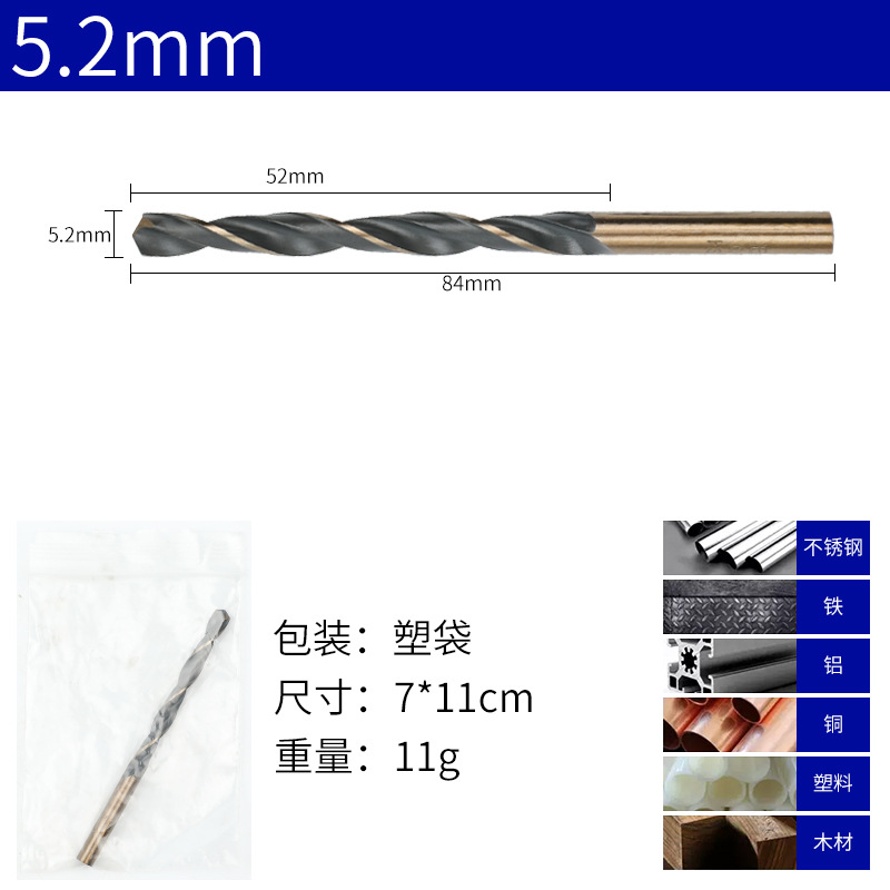 - 規格型號:5.2MM*10-120*高速鋼*直柄麻花鑽