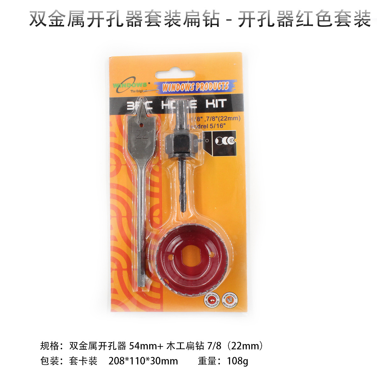 規格:雙金屬開孔器54mm+木工扁鑽7/8(22mm)