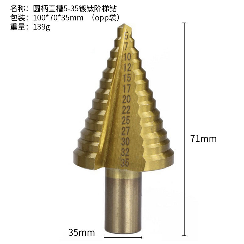 - 型號:圓柄直槽5-35鍍鈦階梯鑽