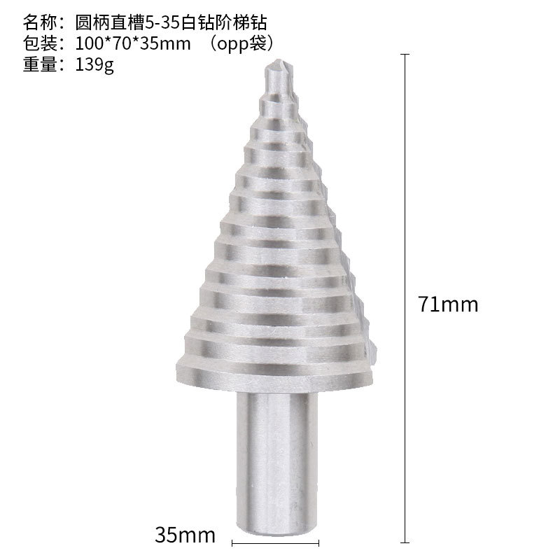 - 型號:圓柄直槽5-35白鑽階梯鑽