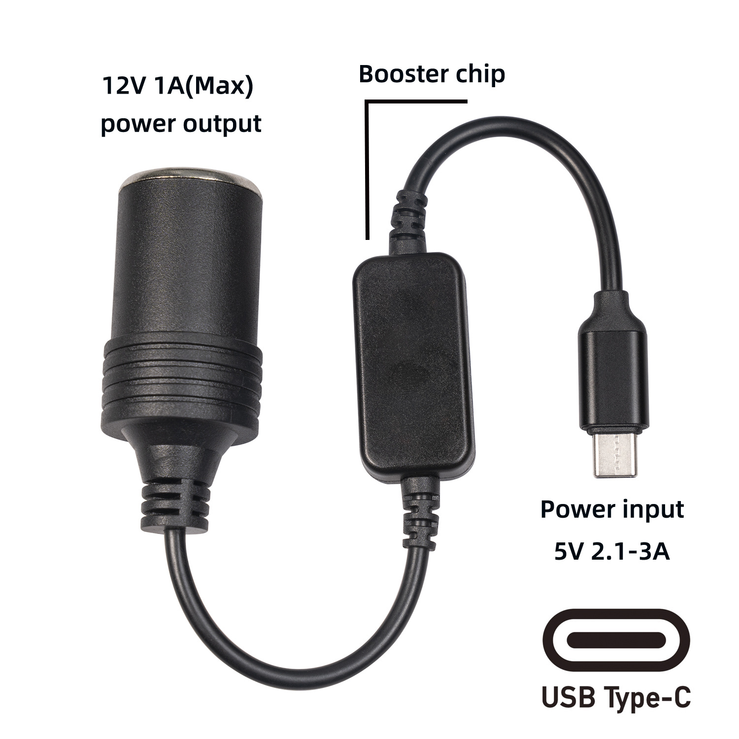 - Model: TYPE-C to Cigarette Lighter (5V to 12V)