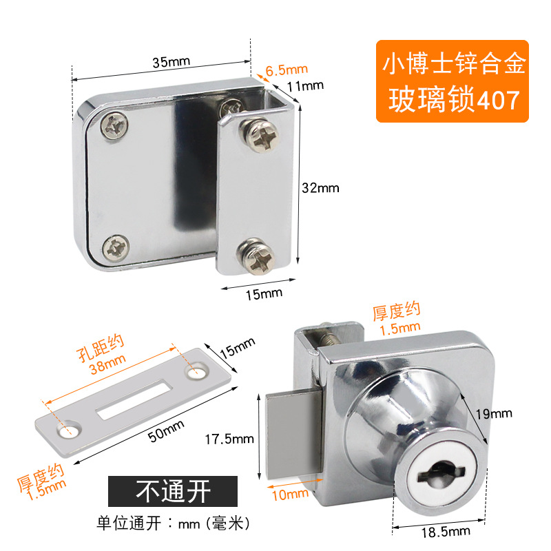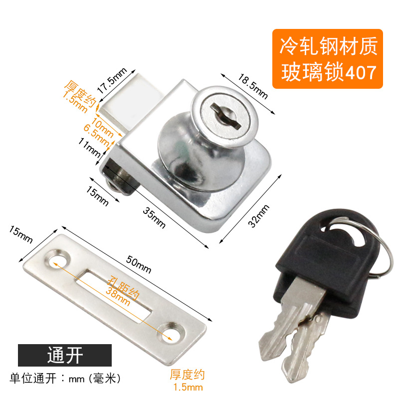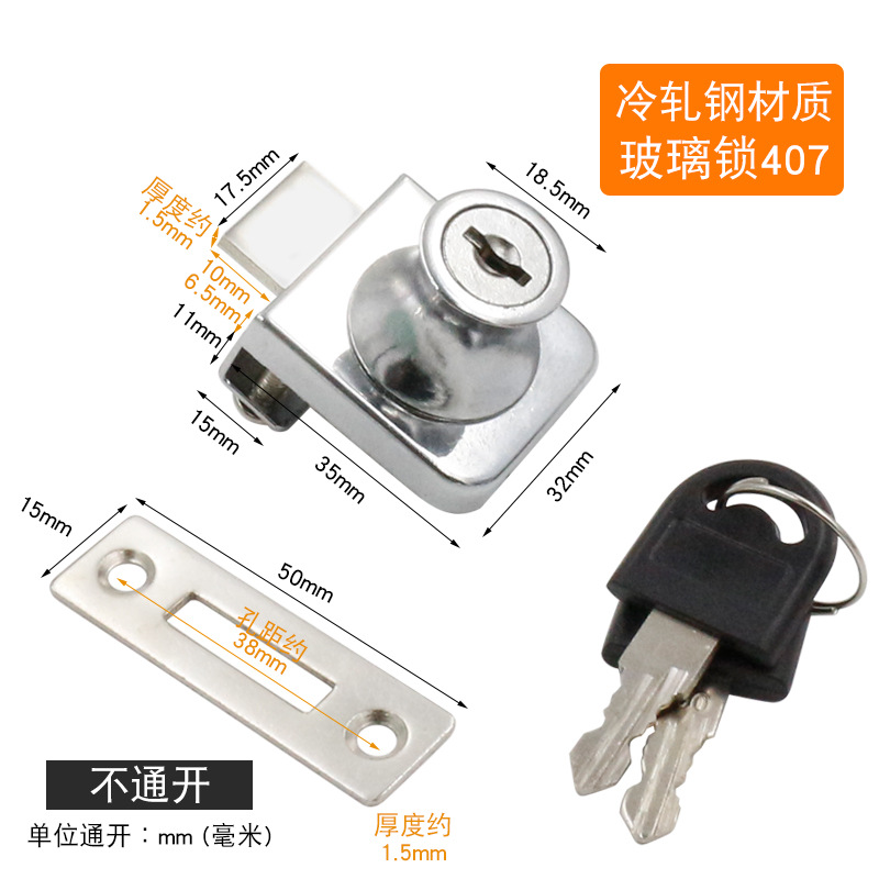 - Specifications: Blank lock cold-rolled steel glass lock 407 (not open)