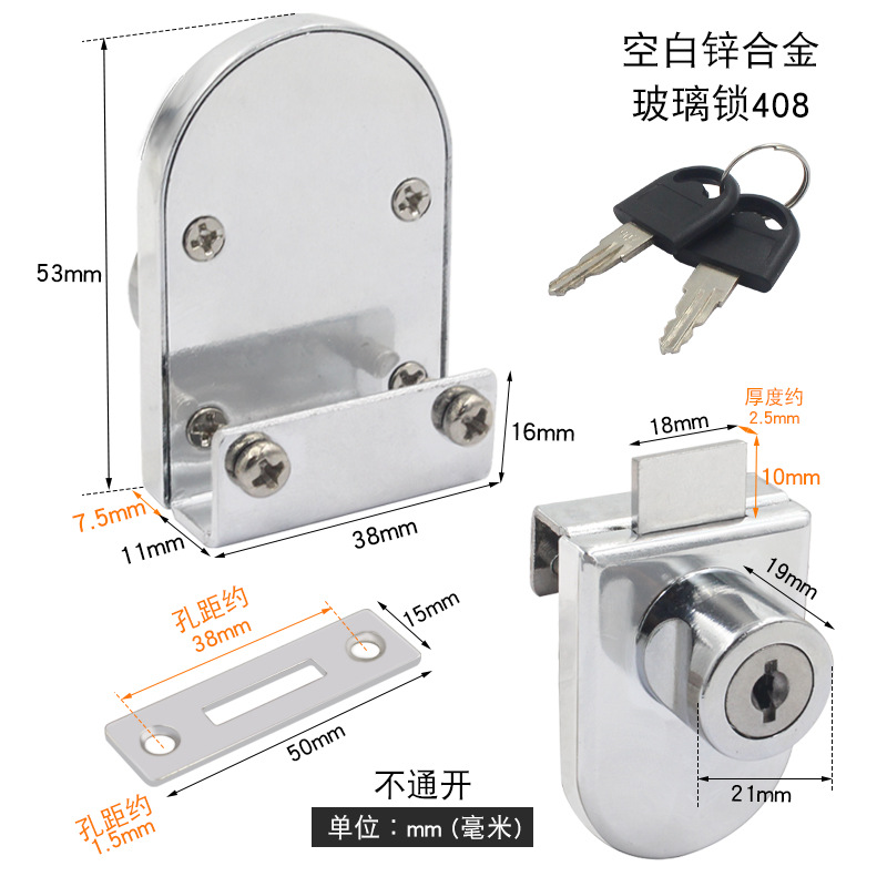 - Specifications: Blank lock zinc alloy glass lock 408 (unable to open)