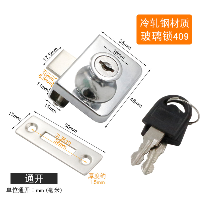 - Specifications: Blank lock cold-rolled steel glass lock 409 (not open)