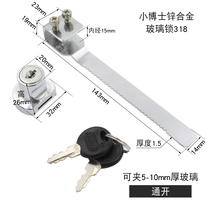 - Specifications: Little Doctor zinc alloy glass lock 318 (open)