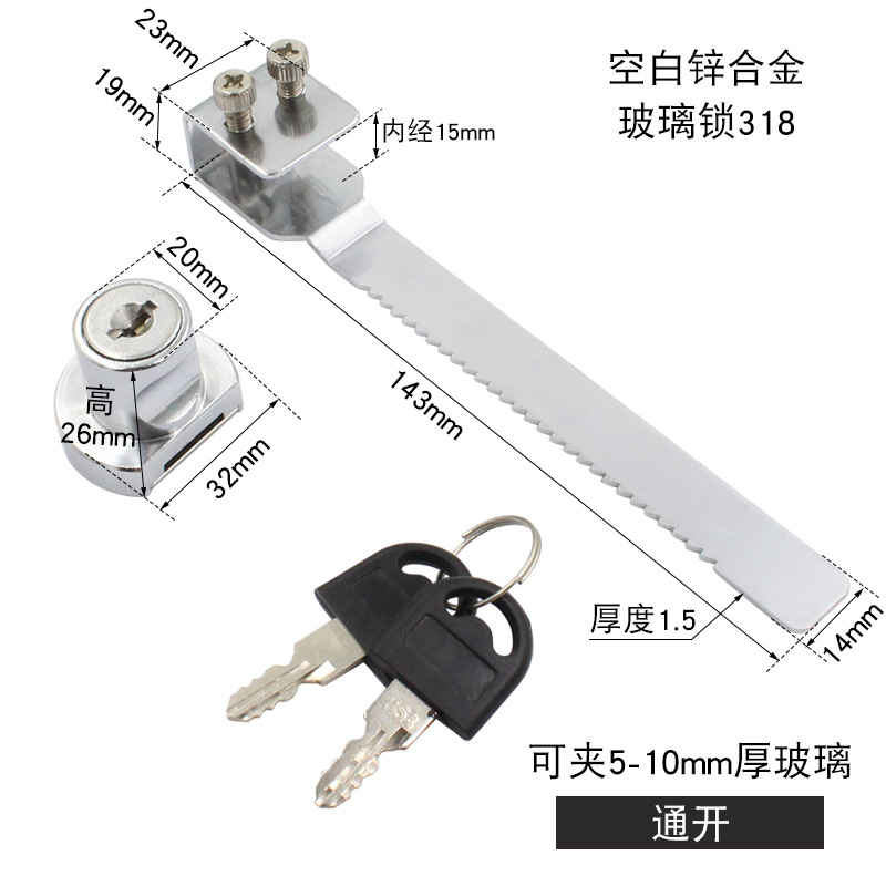 - Specifications: Blank lock zinc alloy glass lock 318 (open)