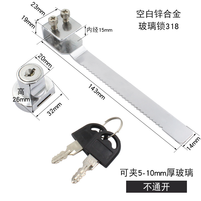 - Specifications: Blank lock zinc alloy glass lock 318 (unable to open)