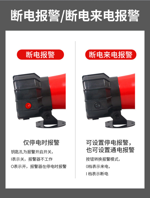 - Working voltage: red horn | power outage alarm | 220V wiring version