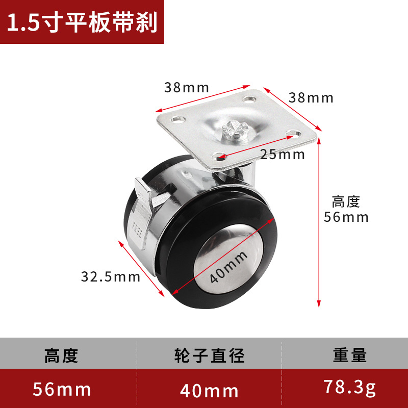 - 規格:合金萬向輪1.5寸絲牙帶剎車