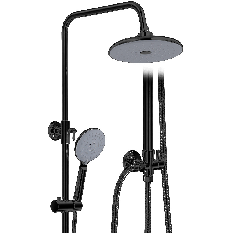 - Specifications: A matte black model, brass body single cold shower set, round top spray with portable packaging