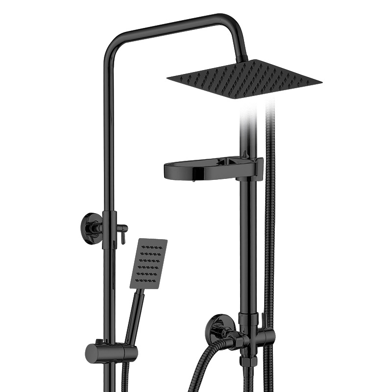 - Specifications: B matte black model, brass body single cold shower set, square top spray with portable packaging