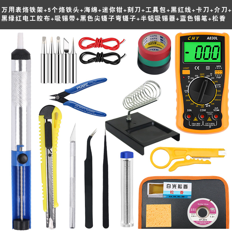 - Model: 808 European standard+half tool+diagonal pliers+C1 frame+clamp+sponge+tin blue+bending forceps+adhesive tape+20g tin+multimeter+5 heads+black and red lines+work package