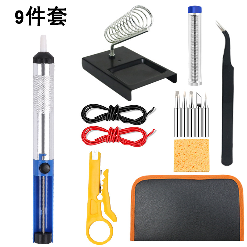 - Model: Half aluminum solder absorber+5 soldering iron tips+blue soldering tool+G-shaped frame+sponge+curved tweezers+pointed tweezers+blue tin pen+tool kit
