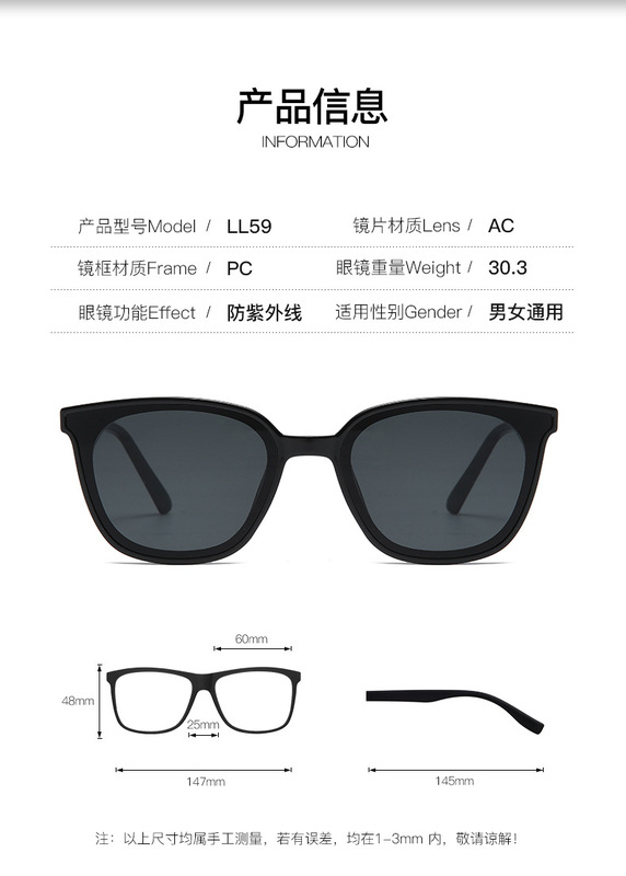 - Transmittance Classification: 3 categories / Sunglasses