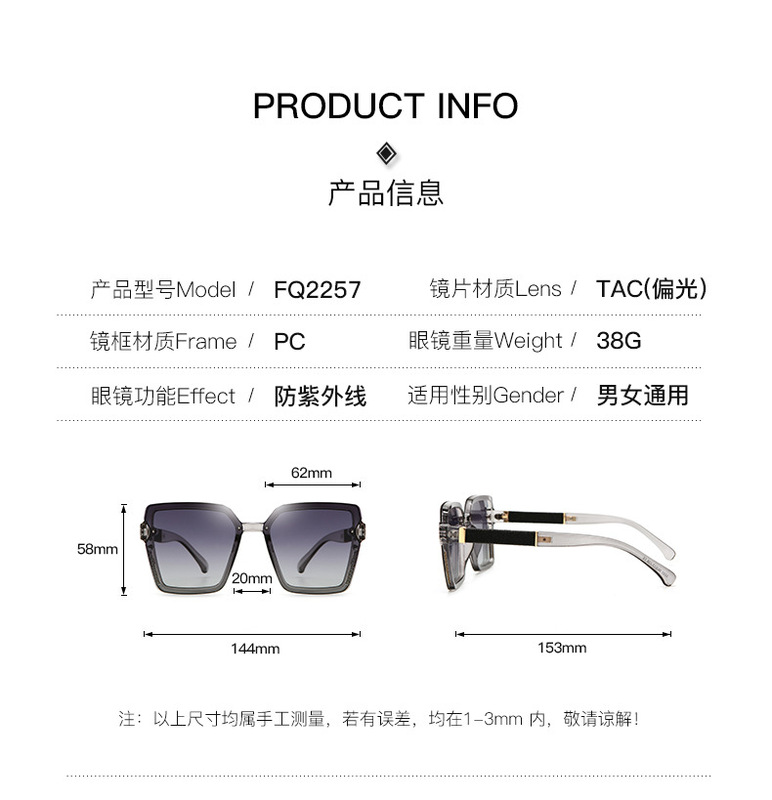 - Transmission ratio classification: 3 categories / Sunglasses