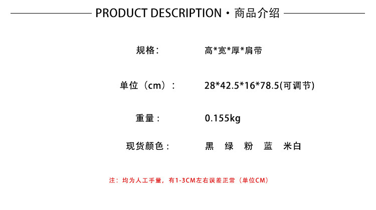 - Internal structure of the bag: Zipper secret pocket