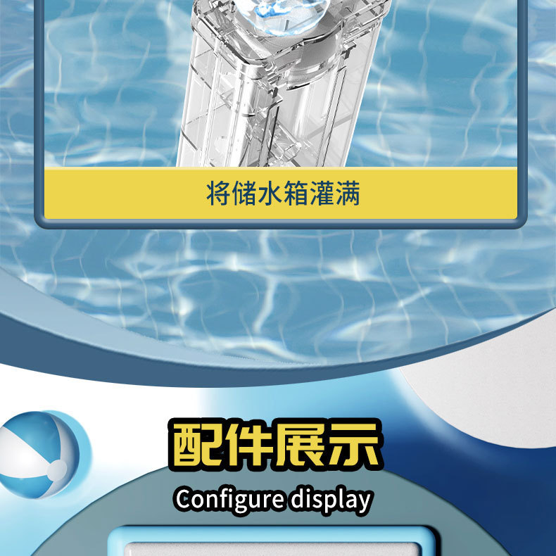 - Function: Electric multi-shot, high-speed water flow, large capacity water tank