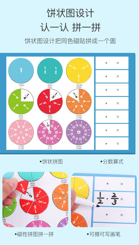 - Product name: Magnetic fraction learning book for primary school grades 3-5 mathematics teaching aids