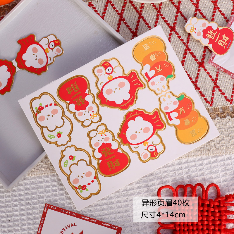 - Specification Model: 40 pieces of gold-leafed New Year header for the Rabbit Year*high-quality white card
