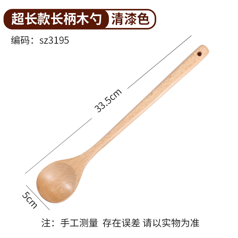 - Specification: Clear lacquer long handle wood spoon (extra long)