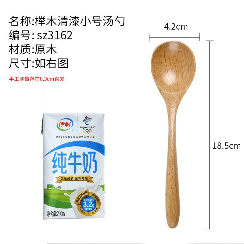 - Specification: Beech wood clear lacquer round mouth spoon small 18.5cm