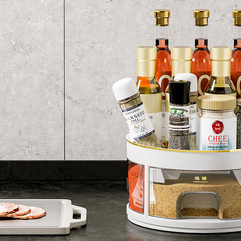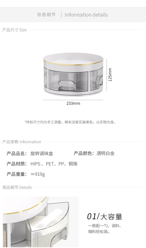 - Specification: Pearl White - Rotating Condiment Box (Divided Storage / Integrated Multi-Compartment)