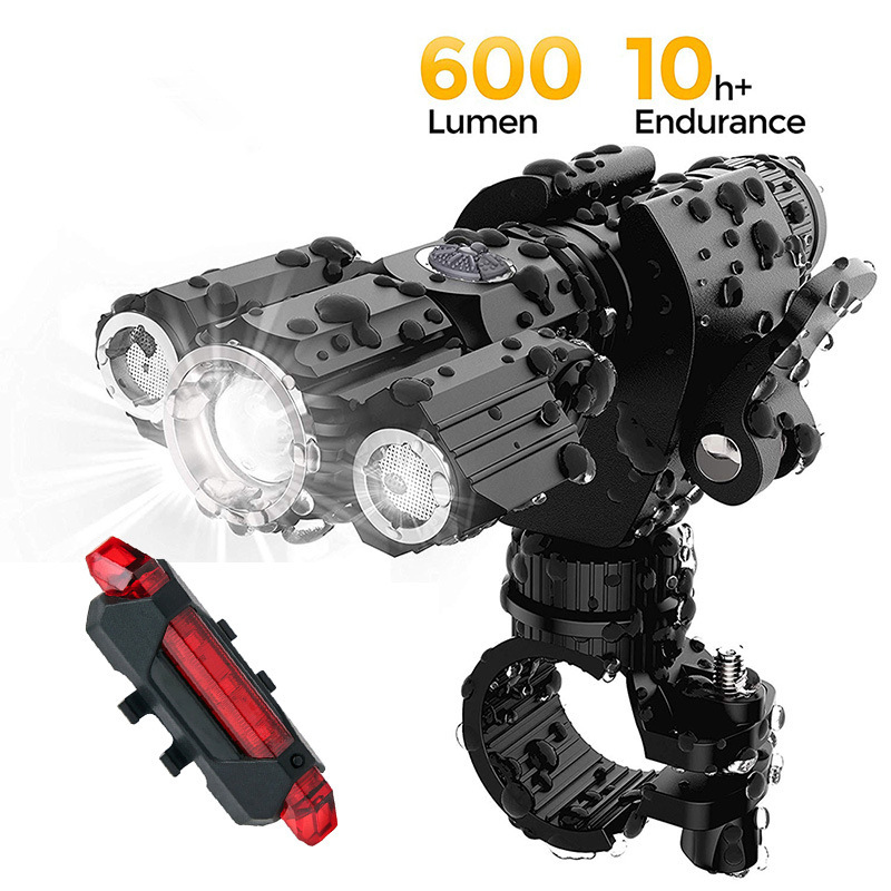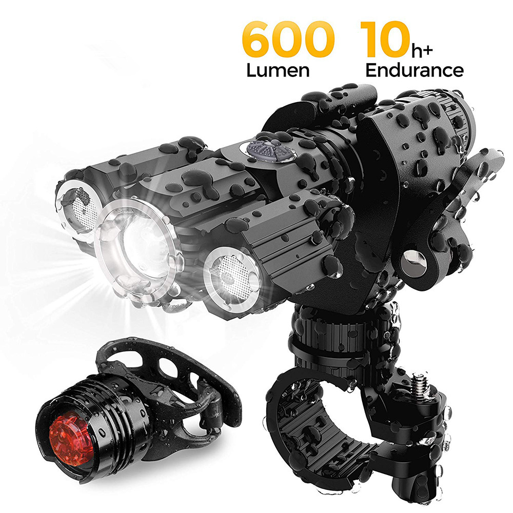 跨境熱賣款夜騎強光手電筒3LED飛機形手電批發自行車燈套裝配尾燈