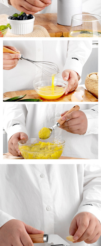 - Material: Wood Handle + Stainless Steel