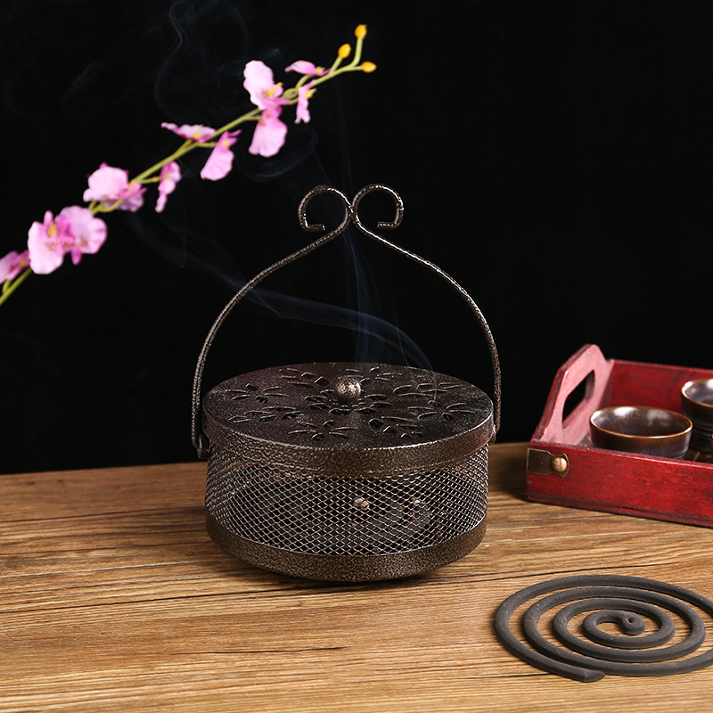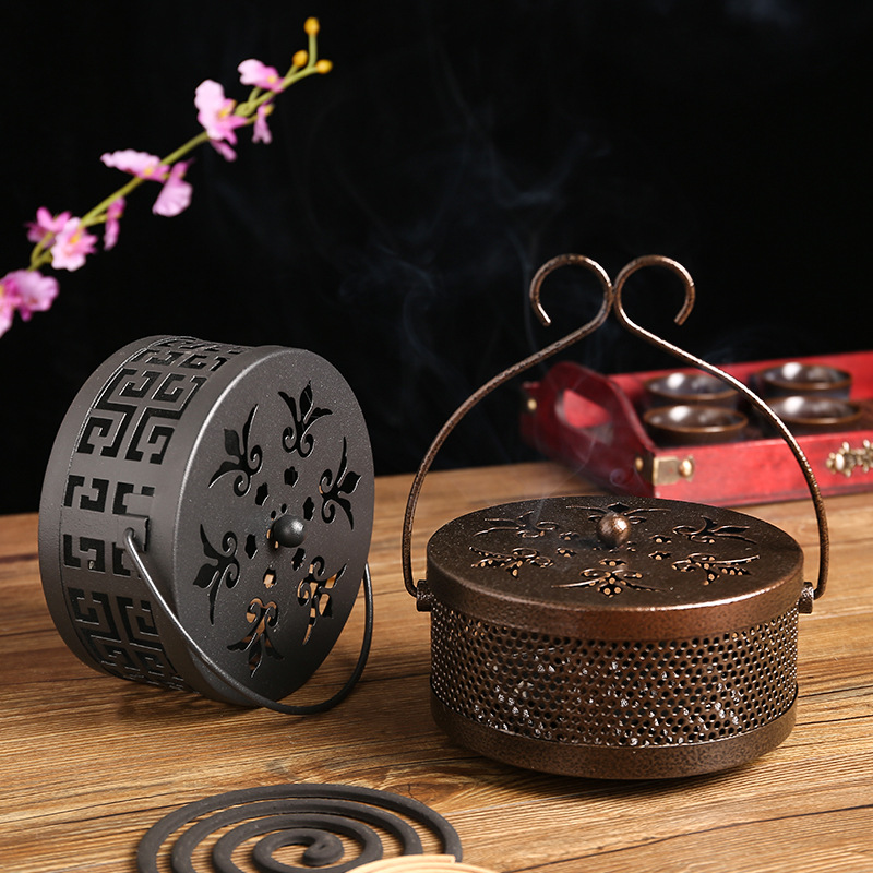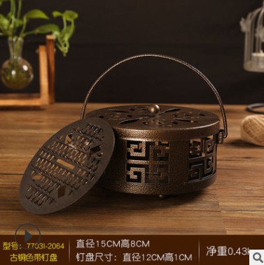創意蚊香盒古典帶蓋防火家用室內蚊香托戶外便捷式手提蚊香爐批發 |