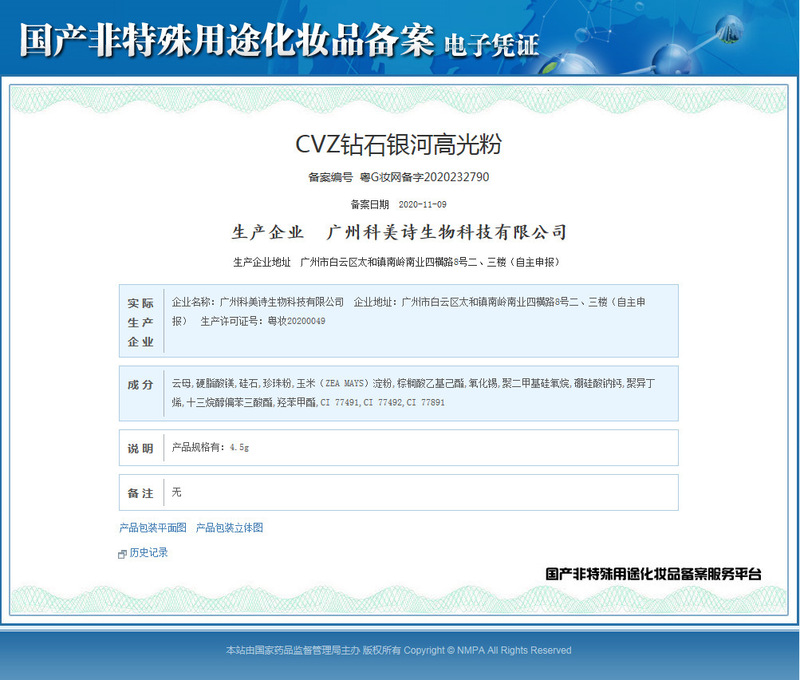 - Special Non-Special Cosmetics Filing Number: Yue G Cosmetics Network Filing Number 2020111336