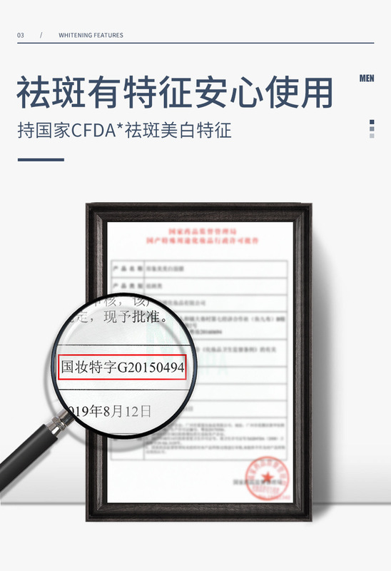- Special Use Cosmetics Certificate Number: National Cosmetic Special Character G20150494