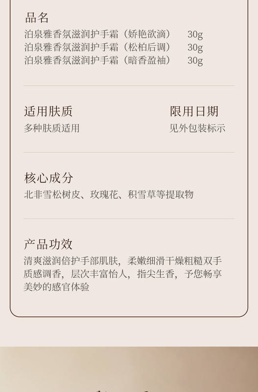 - Product Name: Po Quan Fragrance Nourishing Hand Cream (Gorgeous and Lustrous) 30g