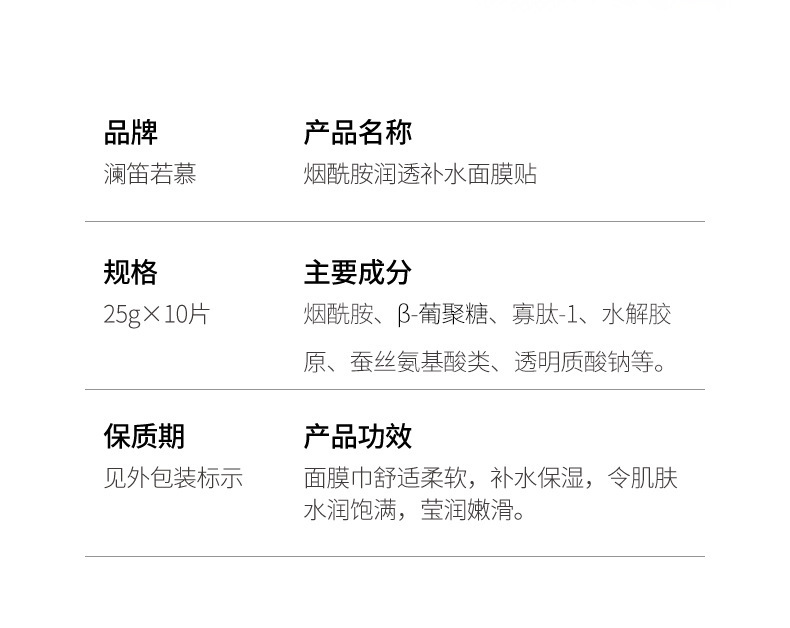 - 產品規格:瀾笛若慕煙酰胺潤透修護面膜貼25gx10片