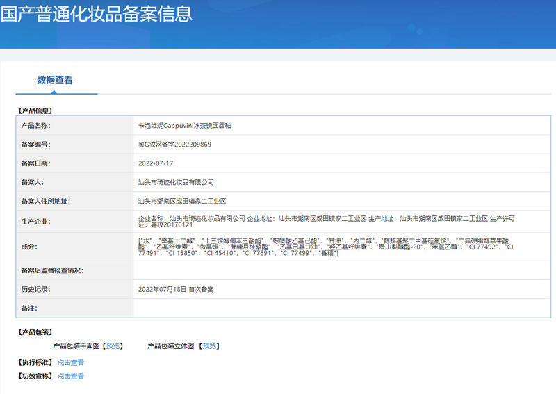 - Non-special cosmetics registration certificate number: Guangdong G makeup network registration number 2020131223