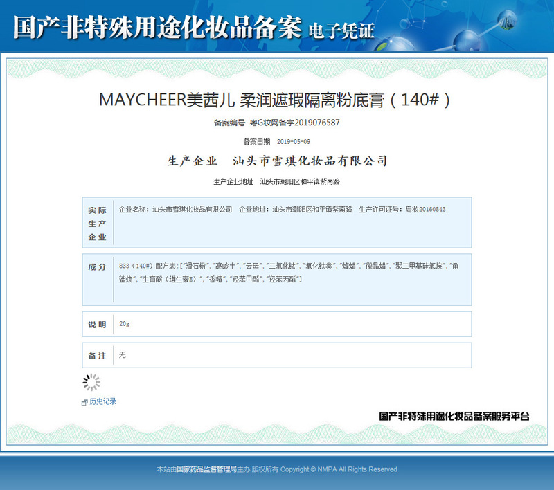 - Non-Special Cosmetics Filing Certificate Number: YueG Yawebbeizizhu 2019076586