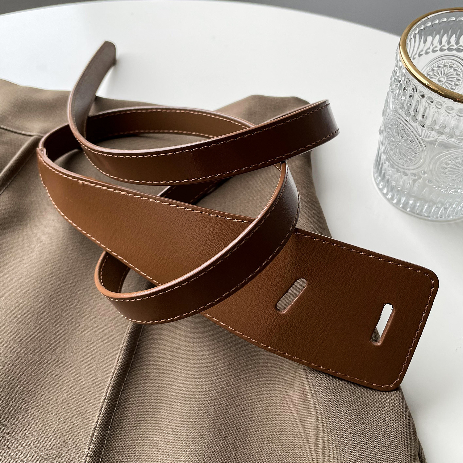 - Belt buckle material: PU/imitation leather