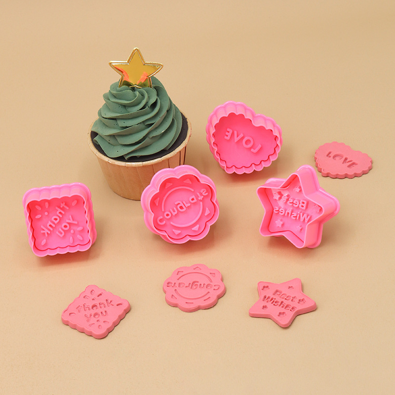 4pcs祝福語彈簧模 3D立體 DIY烘焙 手按壓式餅乾模具 廠家直供