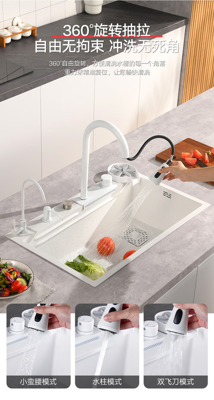- Specifications: Milky white six-hole raindance sink