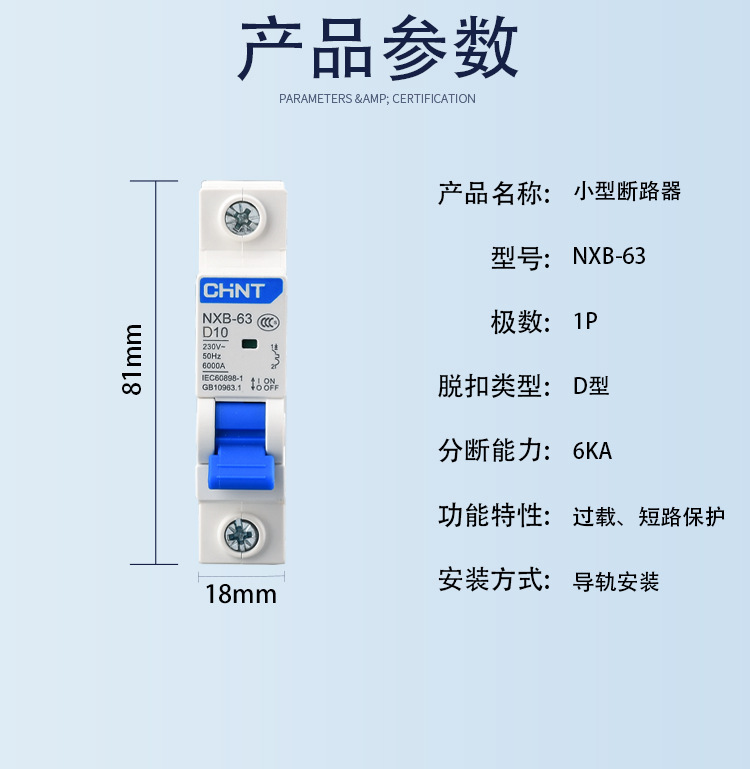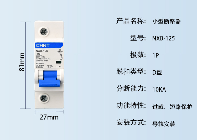 - Circuit breaker type: miniature circuit breaker