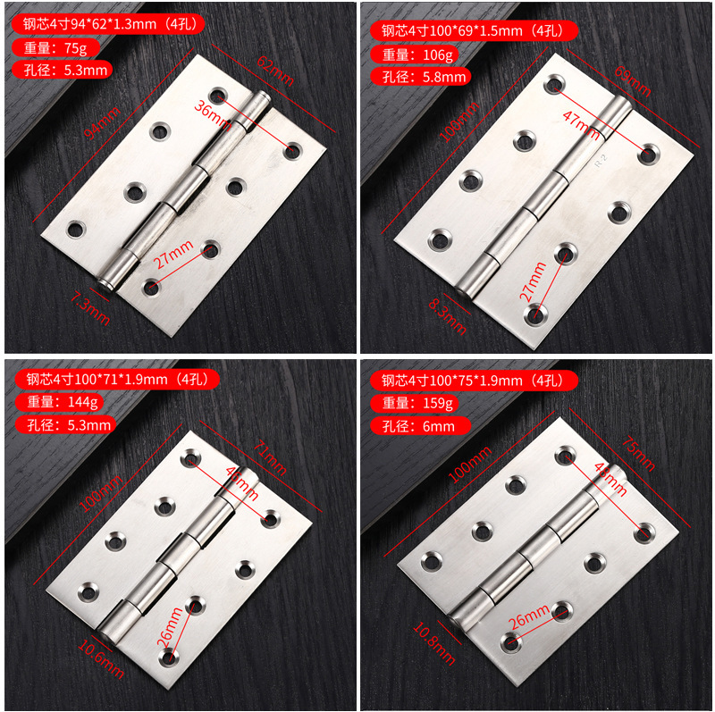 - Specification: [Steel Core Brushed] 4 inches 100*69*1.5mm [4 holes]